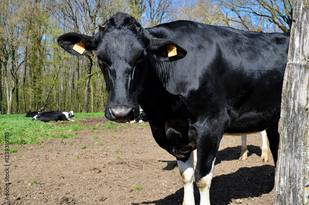 Herd of dairy cow. It is a Holstein Friesian breed cow used for the dairy industry.