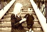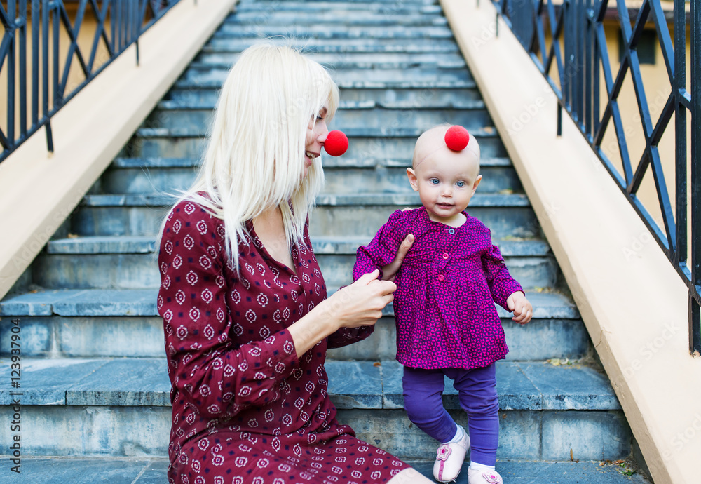 Happy mother and child with clown noses