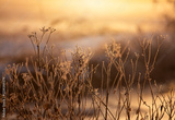 Zimowy, mroźny poranek, szron, przymrozek.