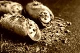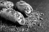 Traditional Sicilian cannoli stuffed with ricotta and pistachios