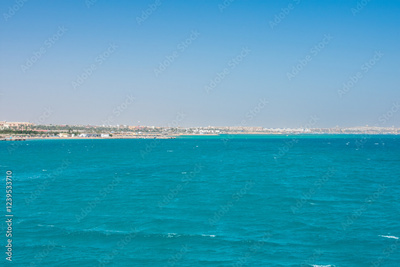 View from boat on Red Sea And Hurghada in Egypt. Cristal clear water and View at city.