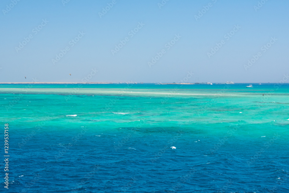 View from boat on Red Sea And Hurghada in Egypt. Cristal clear water and View at city.
