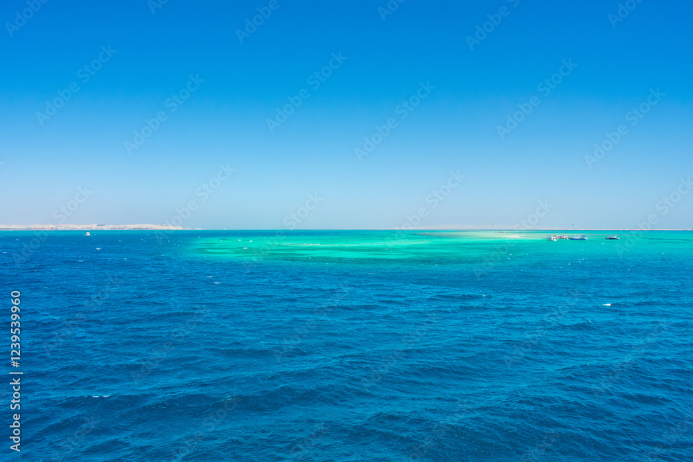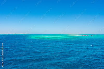View from boat on Red Sea And Hurghada in Egypt. Cristal clear water and View at city.