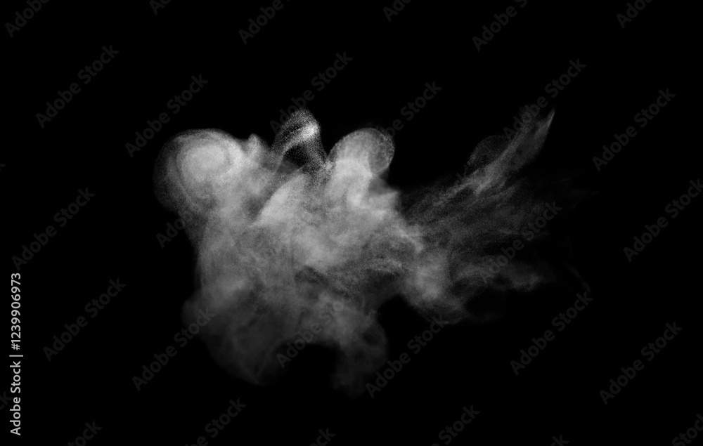 Close-up photo set of abstract white smoke or vapor floating on black background. Fog and cloud effect for air pollution design. Smog elements
