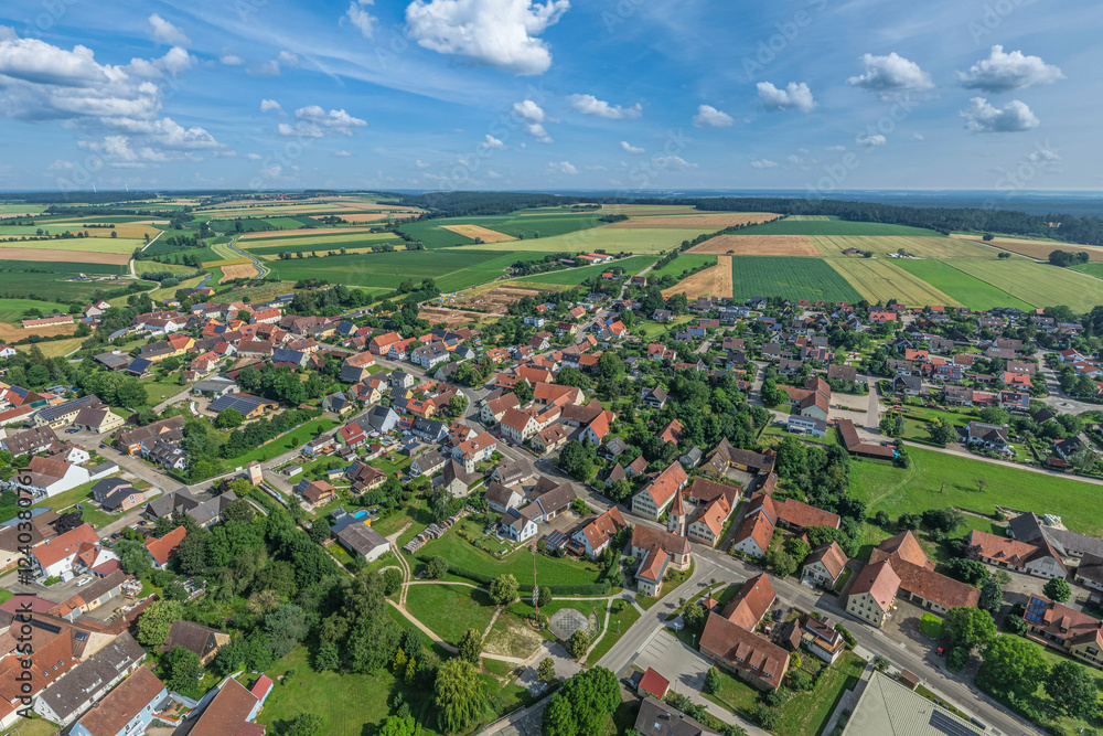 Die Ferienregion Hesselberg rund um die Gemeinde Ehingen aus der Vogelperspektive