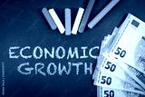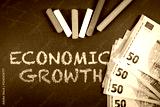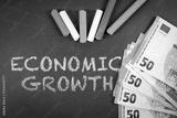 Economic Growth. Euro money and colorful pieces of chalk on a green chalkboard background
