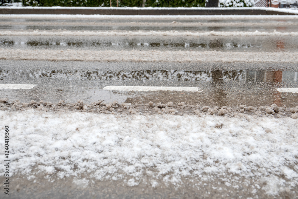 Thawing and salt mixture on the highway
