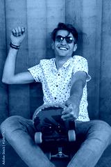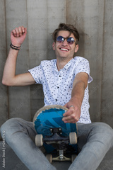 Portrait of young fashion guy with a skateboard