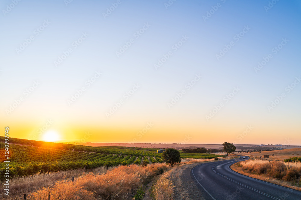 Beautiful winding road through Barossa Valley wine region, Tanunda, South Australia