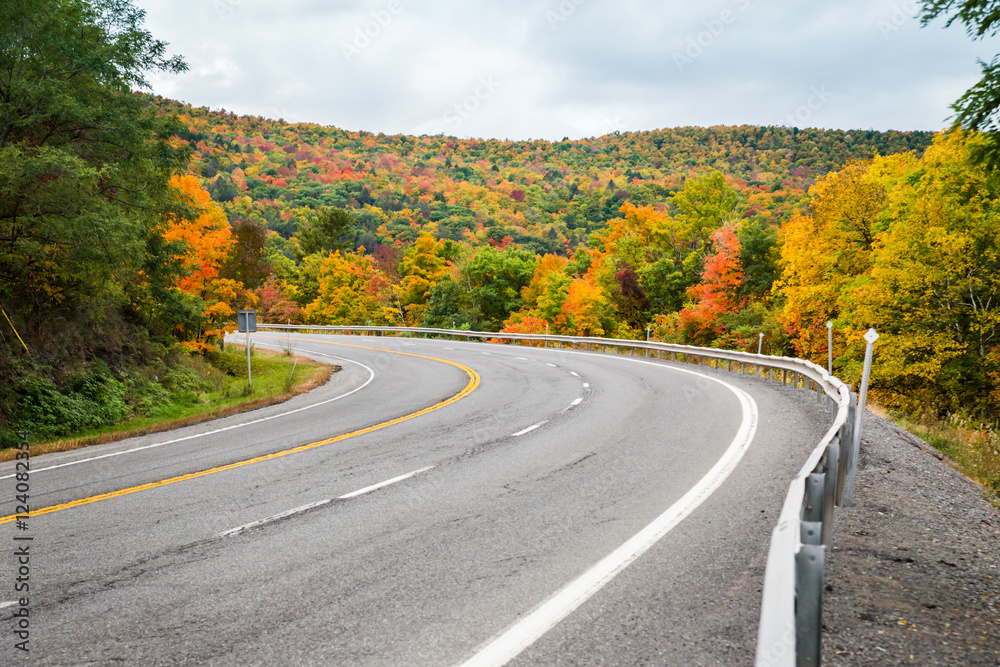 Winding scenic drive upstate New York. The Catskills are one of the most popular destinations for scenic drives, bike trails, foliage and nature lovers