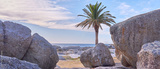Rocks, sand and beach coast for freedom, holiday trip and tranquility in tropical island of New Zealand. Boulders, peace and travel to sea waves in nature, ocean vacation and sustainable adventure
