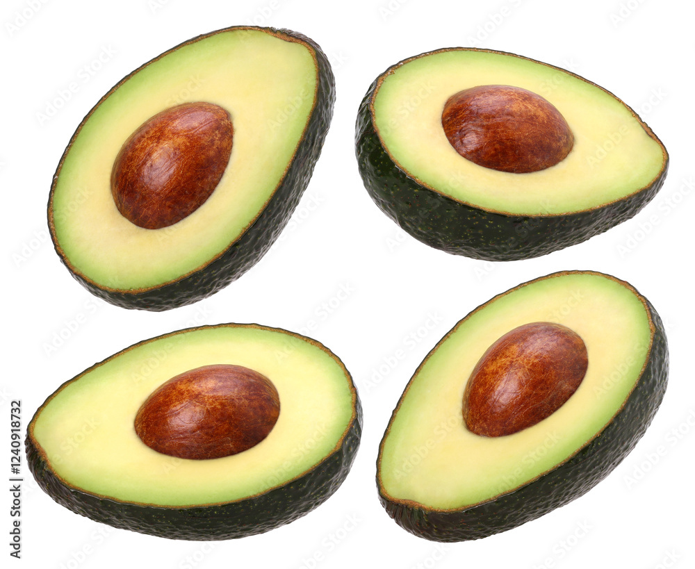 Avocado cut in half isolated, transparent PNG, PNG format, collection