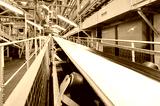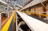 Pipelines and conveyor belt in a chemical plant highlighting industrial processes and infrastructure during daytime operations
