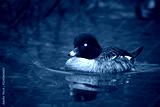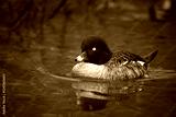 Portrait of a Common Goldeneye (Bucephala clangula) female on pond, The Netherlands