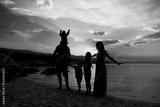 happy family silhouette at greek sea background