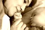 Young mother and baby napping at home