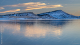 winter dusk over calm Carter Lake in northern Colorado at foothills of Rocky Mountains