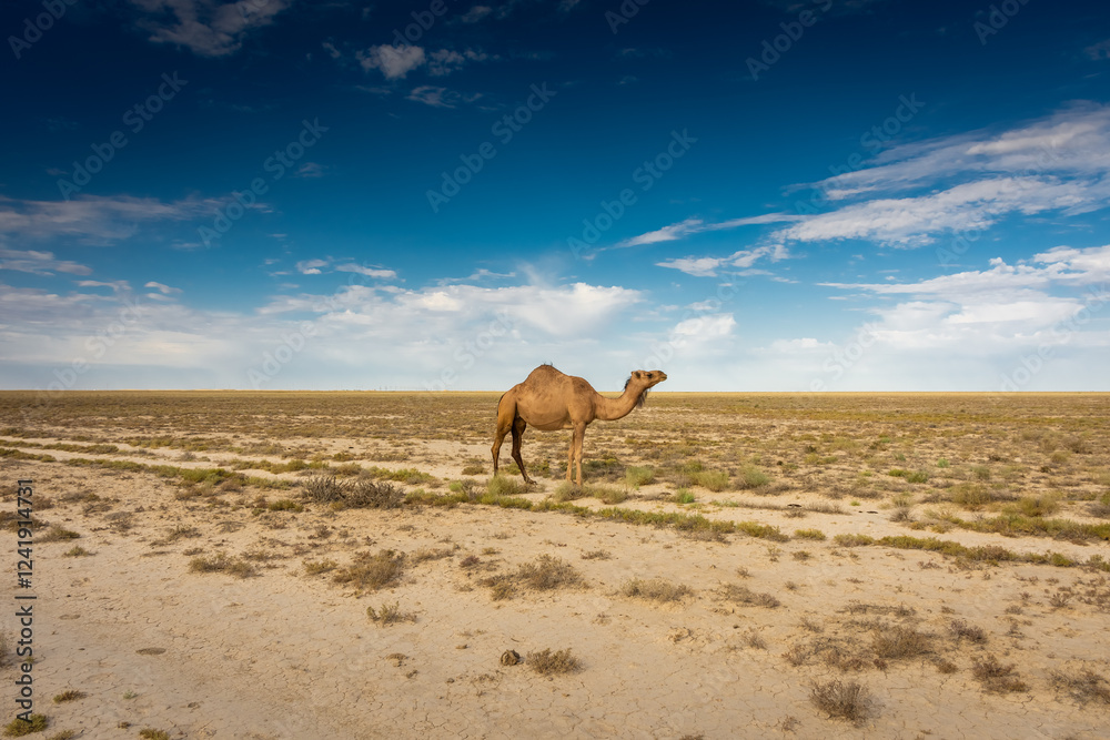 Lonely camel in the dry Aral Sea desert, Uzbekistan