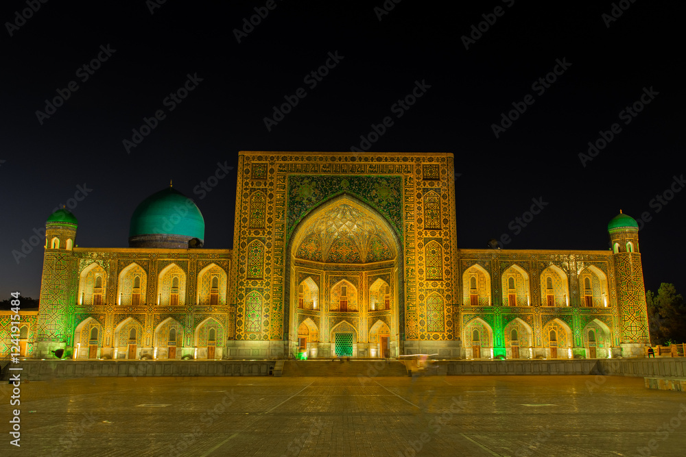 The Registan square Madrasa at night, Samarkand, Uzbekistan