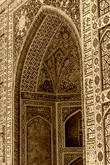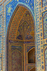 Stunning arch in the entrance of the madrasah of Registan Square, Samarkand, Uzbekistan