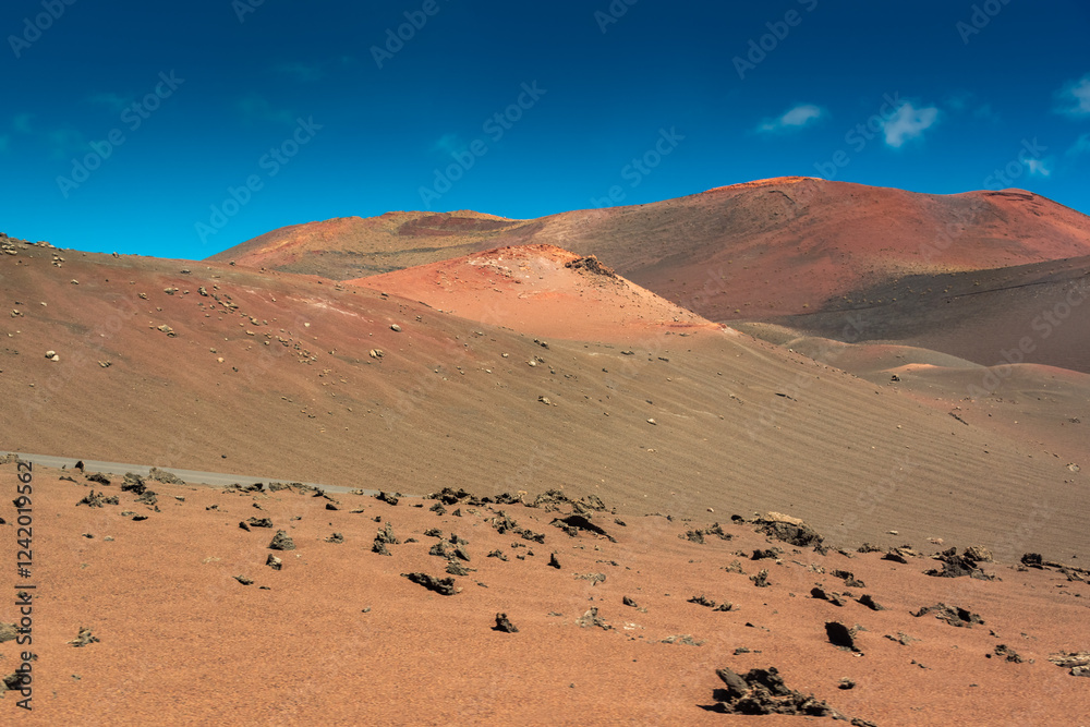 Volcanic desert in Timanfaya National Park, Lanzarote, Spain
