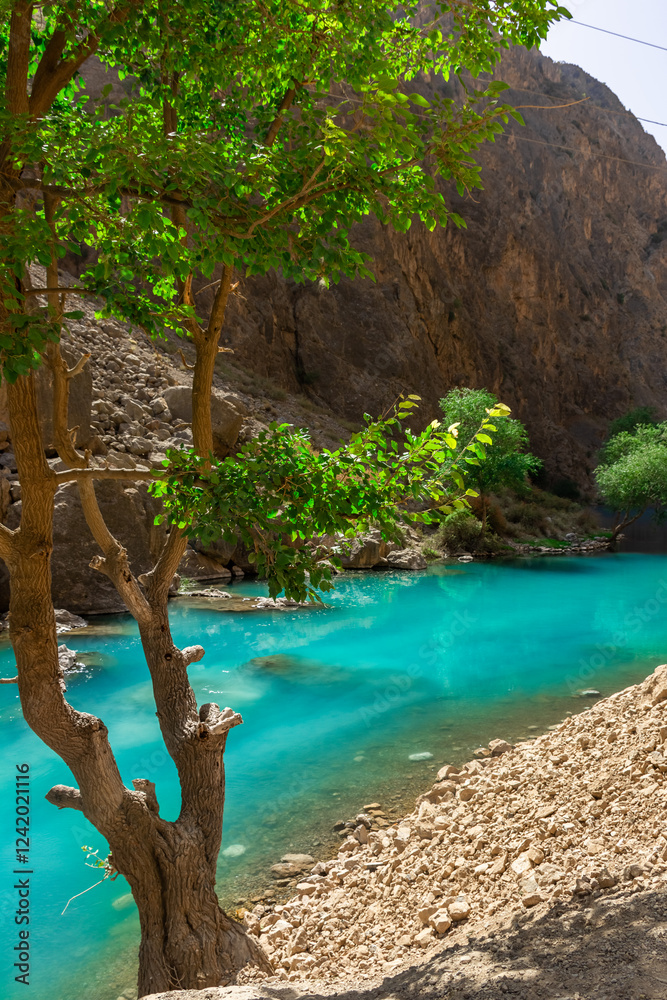 Turquoise water of the Seven Lakes in the Fann Mountains, Tajikistan