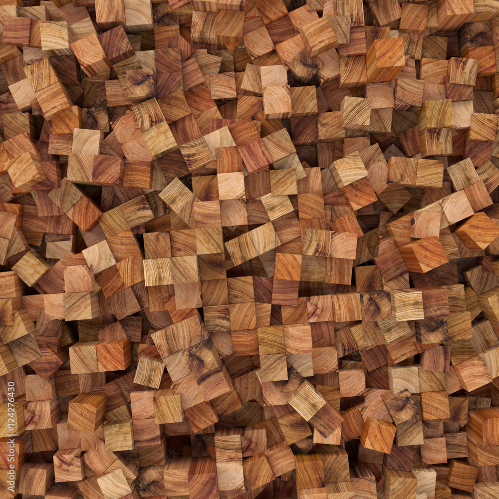 Wooden abstract squares backdrop. 3d rendering geometric polygons