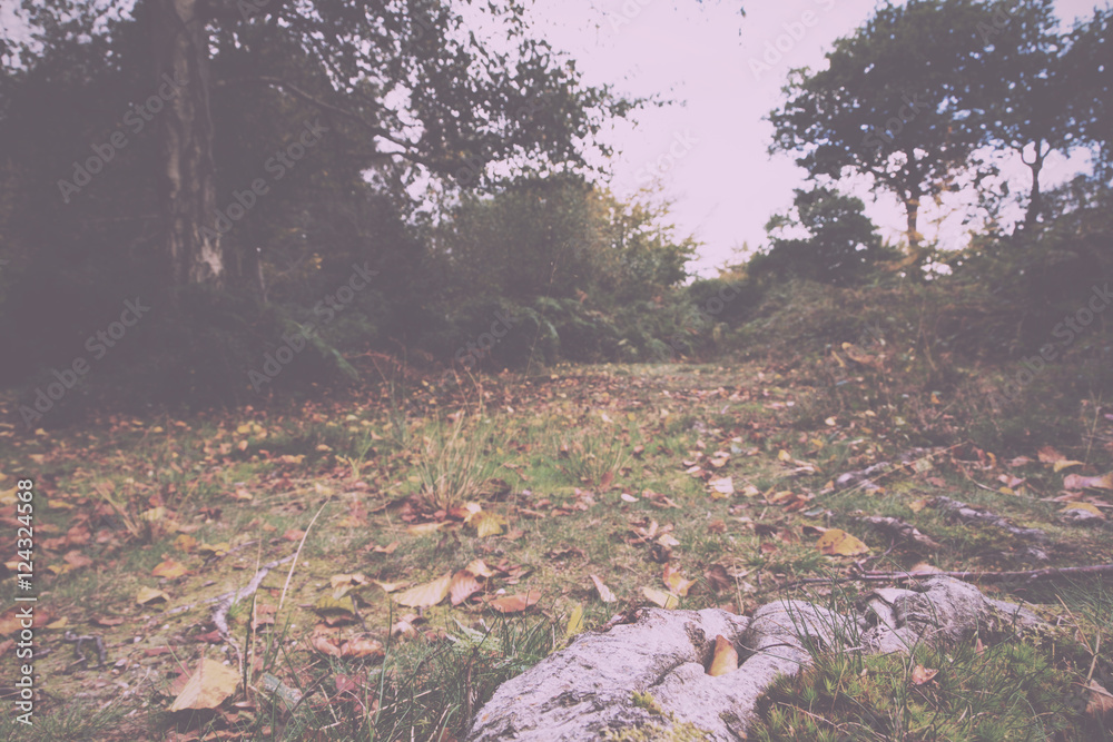 Woodland scene at the start of autumn Vintage Retro Filter.