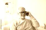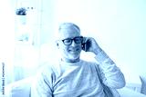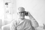 happy senior man calling on smartphone at home