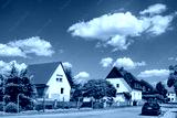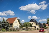 könnern, deutschland - wohnsiedlung mit einfamilienhäusern vor blauem himmel