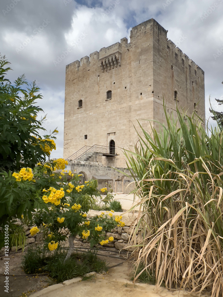 The view of the garden in front of the former Crusader stronghold - Kolossi Castle. Kolossi. Limassol District. Cyprus