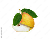 Pears with leaf isolated on white background