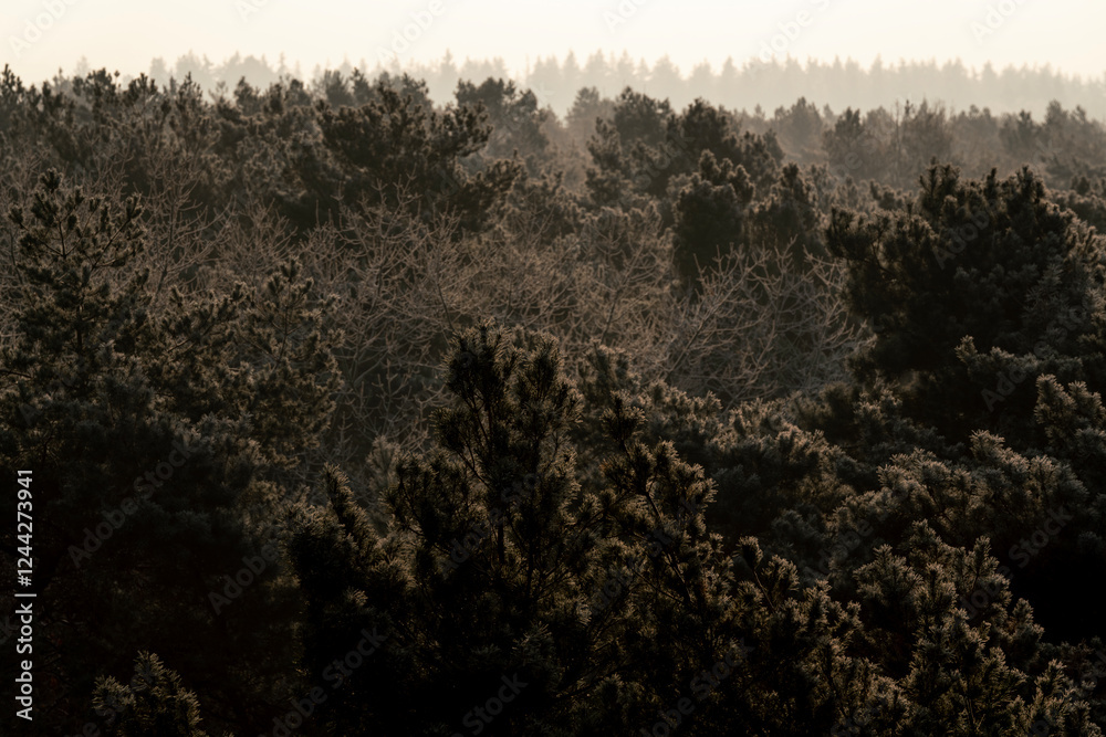 pretty morning over the forest canopy orange light nature trees