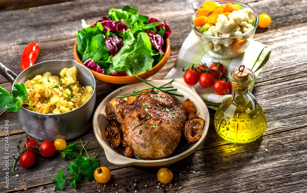 Homemade lunch. Meat, pork, potatoes and vegetable