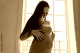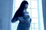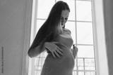 Pregnancy motherhood people expectation future. Pregnant woman with big belly standing near window at home. Girl hugging her tummy enjoying pregnancy. Maternity tenderness parenthood new life concept
