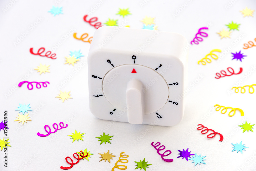 Countdown timer with stars and spirals bursting out