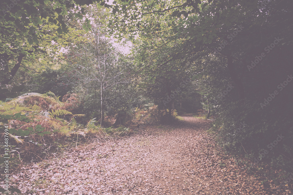Woodland scene at the start of autumn Vintage Retro Filter.