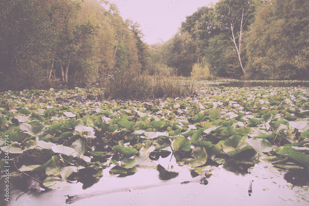 Woodland scene at the start of autumn Vintage Retro Filter.