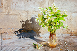Bouquet of jasmine flowers near the concrete wall with copy space for your text