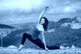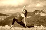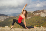 Slim woman doing yoga in mountains landscape