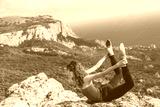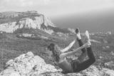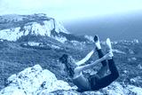 Girl doing yoga in mountains landscape