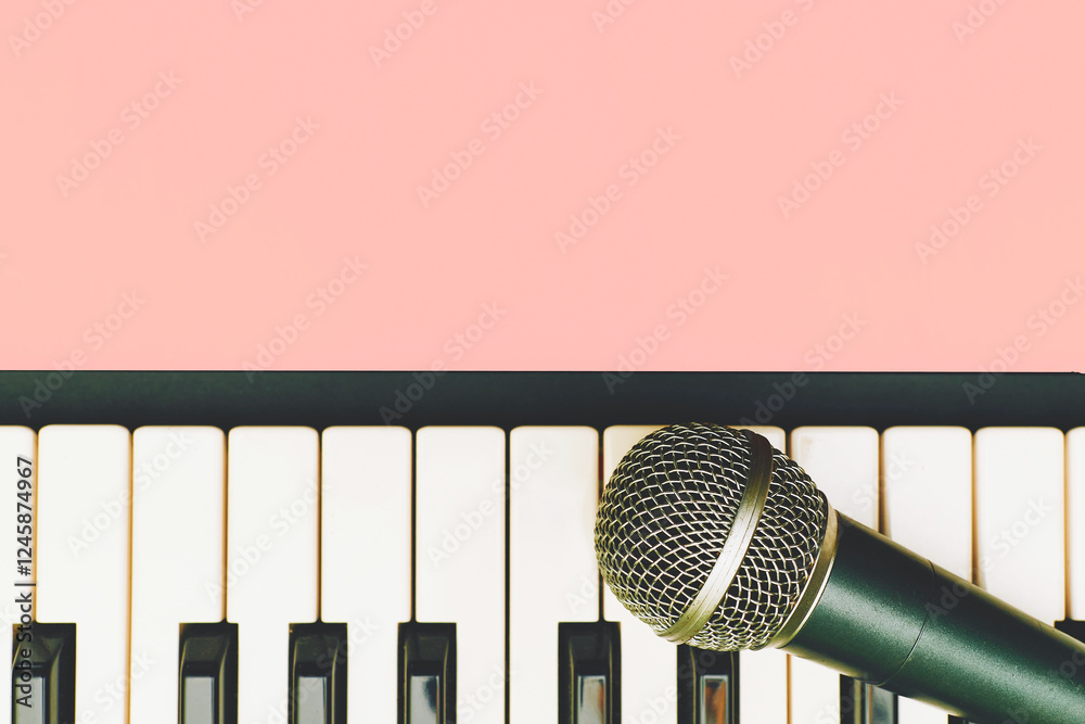 Business visit card for musicians,entertainment producers,microphone,piano keys