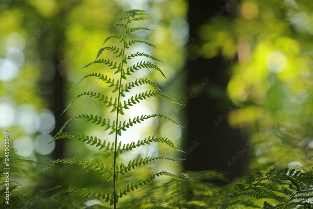 Fern in the forest on a sunny spring morning, June, Poland