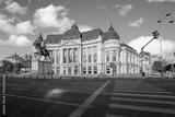 Long exposure aerial shot of the Revolution Square near Victoria Avenue in Bucharest, Romania. Traffic and historical buildings.Bucuresti