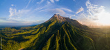 Aerial Panorama of Mount Merapi Volcano in Golden Morning Light, Java, Indonesia