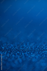 Abstract dark blue glitter bokeh holiday background. Winter xmas holidays. Christmas.