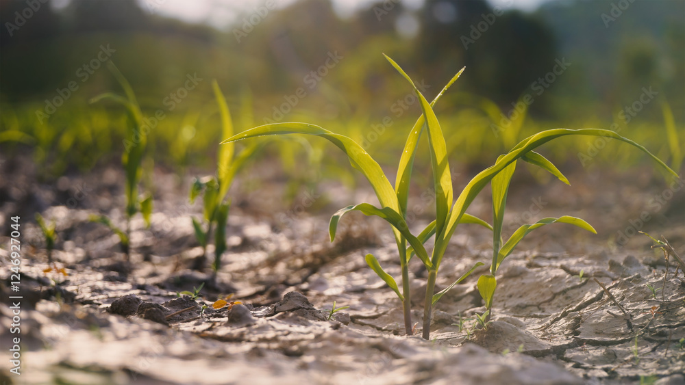 corn seedling on an cornfield plantation in the evening