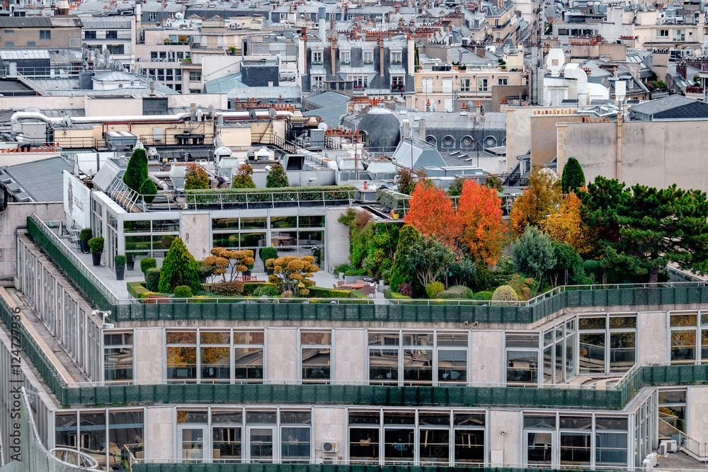 Paris rooftops in the historic heart of the city. View with close up detail.