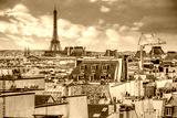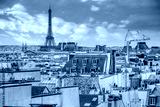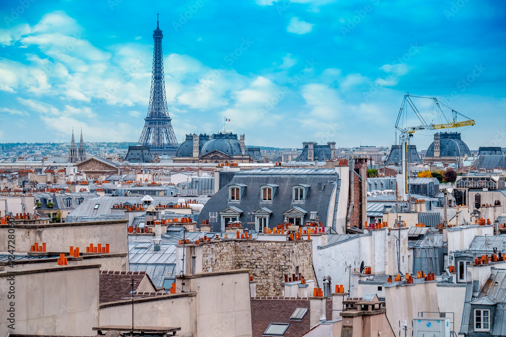 Aerial view of Paris from Pompidou Center with Eiffel Tower in the distance. France.