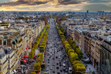 Paris, France aerial view from Triumphal Arch on Champs Elysees